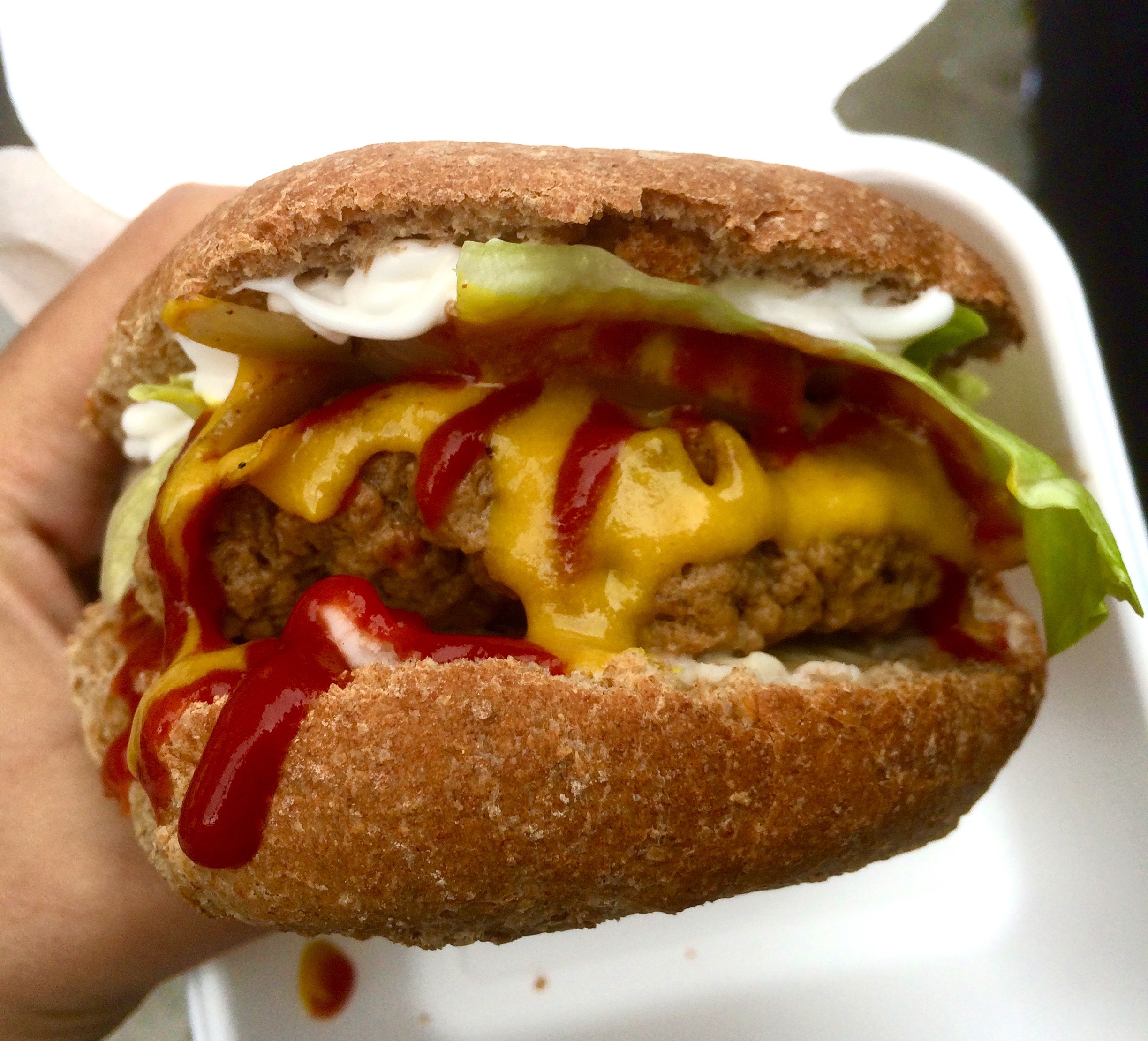 One thing I took from the burger at Essential Vegan was that it was trying to be something it wasn’t. One thing I feel veggie or, for that fact, vegan burgers don’t need to be is a meat substitute, and as this burger was described to me as being more meaty from the offset I was already dubious. Add the vegan ‘cheese’ and the egg-free mayo, and you have a whole lot of false things going on. A vegetable patty, served with salad and ketchup is equally as vegan, and probably a lot more tasty – what’s wrong with that? It might sound a bit hypocritical coming from a writer of a veggie burger blog but vegetarianism and being vegan doesn’t need to be an imitation of meat eating, it should be something wholly unique. So, whilst I was happy that I finally found a veggie burger van in a pop up market, I feel like my search is far from over.