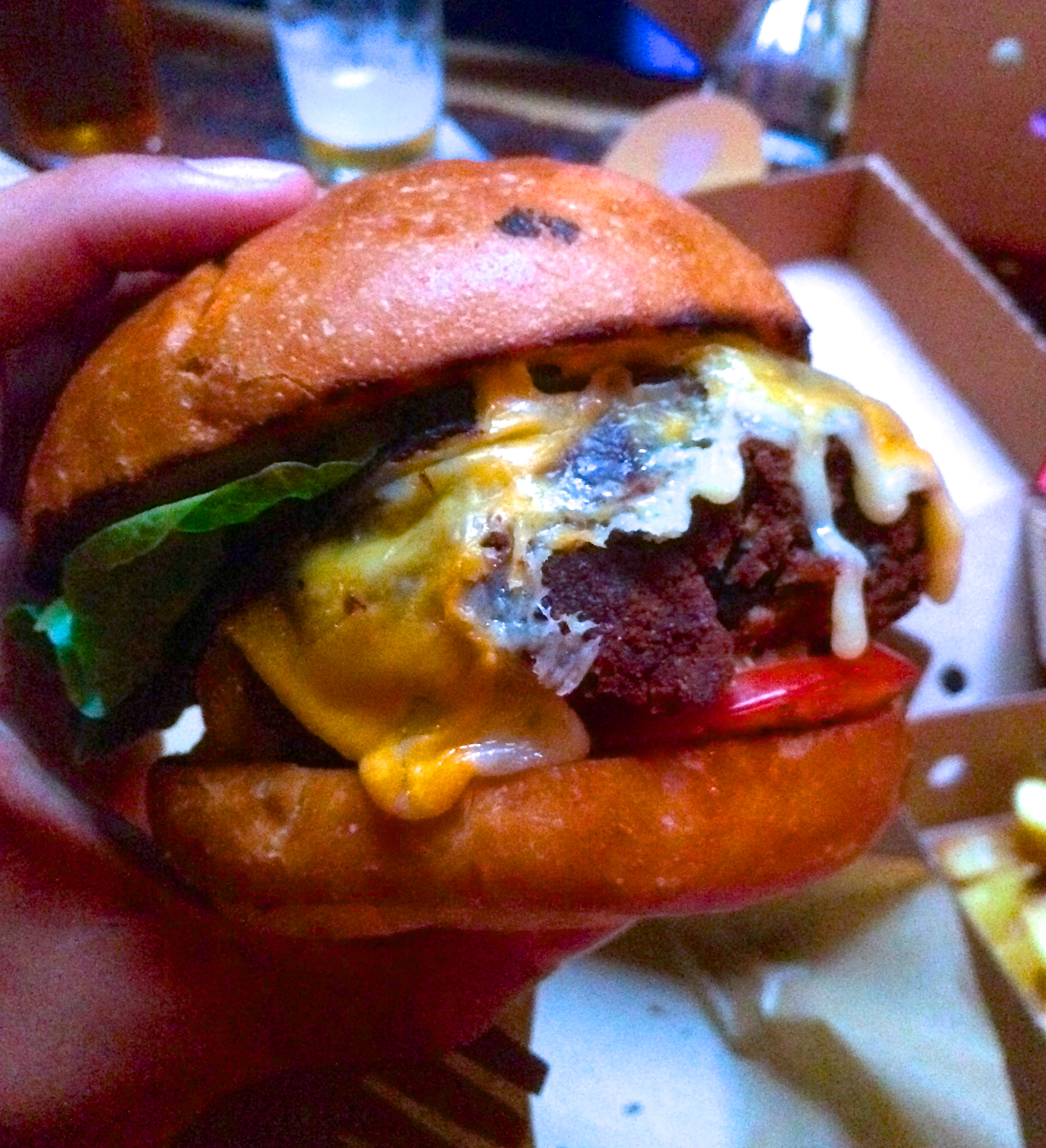 So, a new year has arrived and what have we to show for it? An empty pocket, a full-stomach, and a hangover that just doesn’t want to go away, no matter how dry our Januaries are. The fact is, December always lives up to being the massive blow out that it threatens to be, and I, for one, always try and grab the bull by the horns. One thing I was looking forward to this year – having been writing this blog for just over a year now – was the onrush of Christmas burgers. It quickly became apparent though, after reading list, after list, of the capital’s meaty Christmas offerings, that there was to be no veggie Christmas. After a (I admit) slightly half-hearted campaign on Twitter to find out if any of the big burger chains were going to be offering a #VegXmas option, it turned out that only Honest offered a veg option (swapping the veg fritter in for the beef in the Christmas burger). Aside from that, it was only Yeah Burger (where I went for my Christmas burger in 2014) that offered a legitimate vegetarian Christmas option, and they actually had 2! It slowly dawned on me that Christmas wasn’t to be celebrated with burgers as a vegetarian, for this year at least. Luckily, however, I had something else to celebrate! December marked a year of living with my girlfriend Rach, so we went for a drink to celebrate at one of our favourite local pubs. And eat a burger.